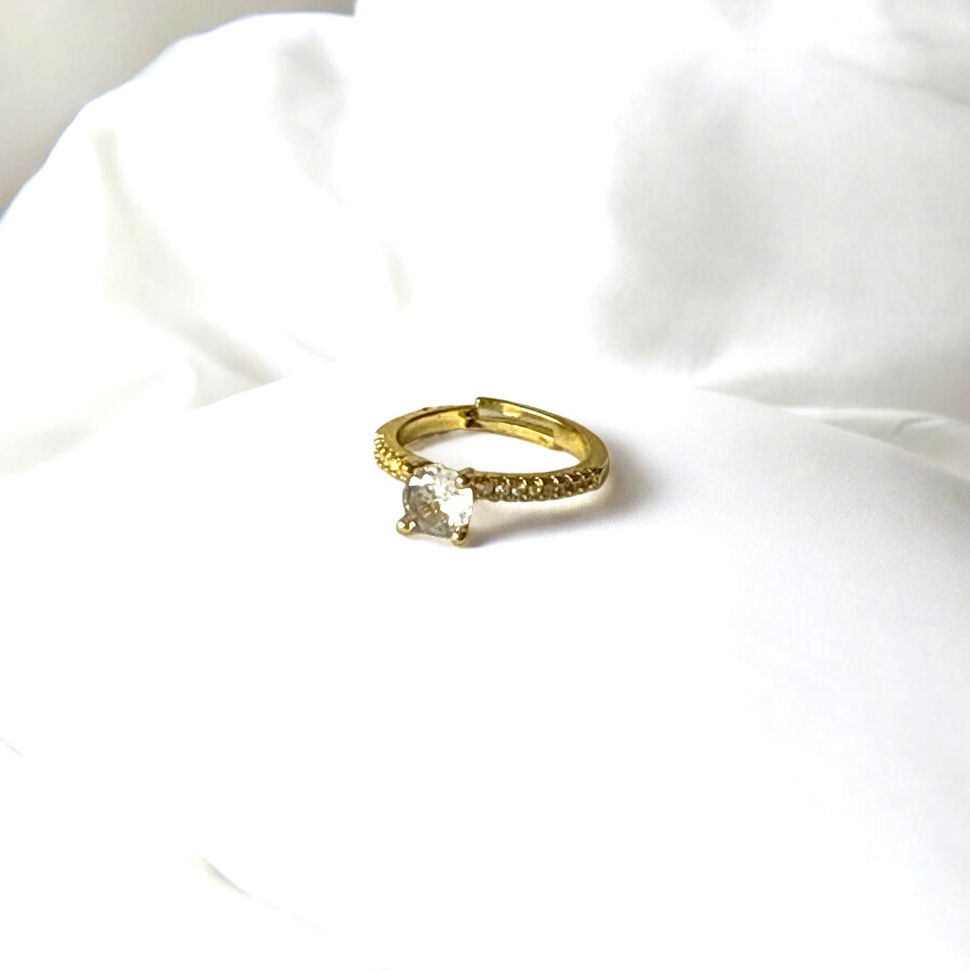 "El anillo dorado tipo solitario de Camile Bijoux 💛 es la joya perfecta para quienes buscan un toque clásico con un brillo moderno. Con una circonia cúbica central de gran tamaño y detalles brillantes en la banda, este anillo es ideal para bodas, compromisos o como accesorio diario. Su diseño ajustable asegura comodidad y versatilidad, adaptándose a cualquier dedo."