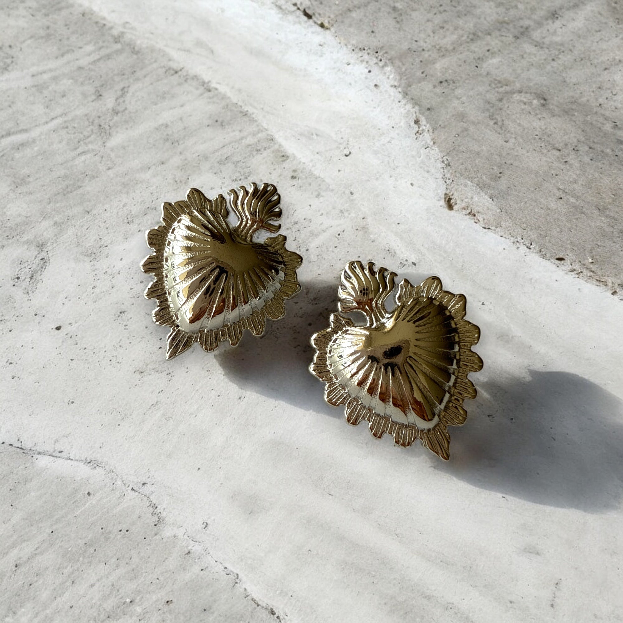 Dale un toque especial a tu look con estos aretes de acero inoxidable en forma de Corazón Exvoto, un diseño icónico que representa amor, fe y gratitud. Su acabado plateado y relieve detallado los convierten en un accesorio único y atemporal.