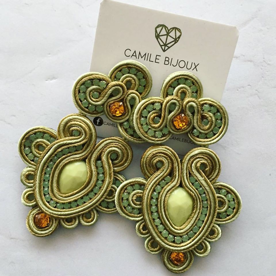 Lindos aretes hechos 100% a mano con la técnica francesa del soutache. Pin de fantasía. Largo:9cm Todos nuestros accesorios vienen en un lindo empaque perfecto para regalo.