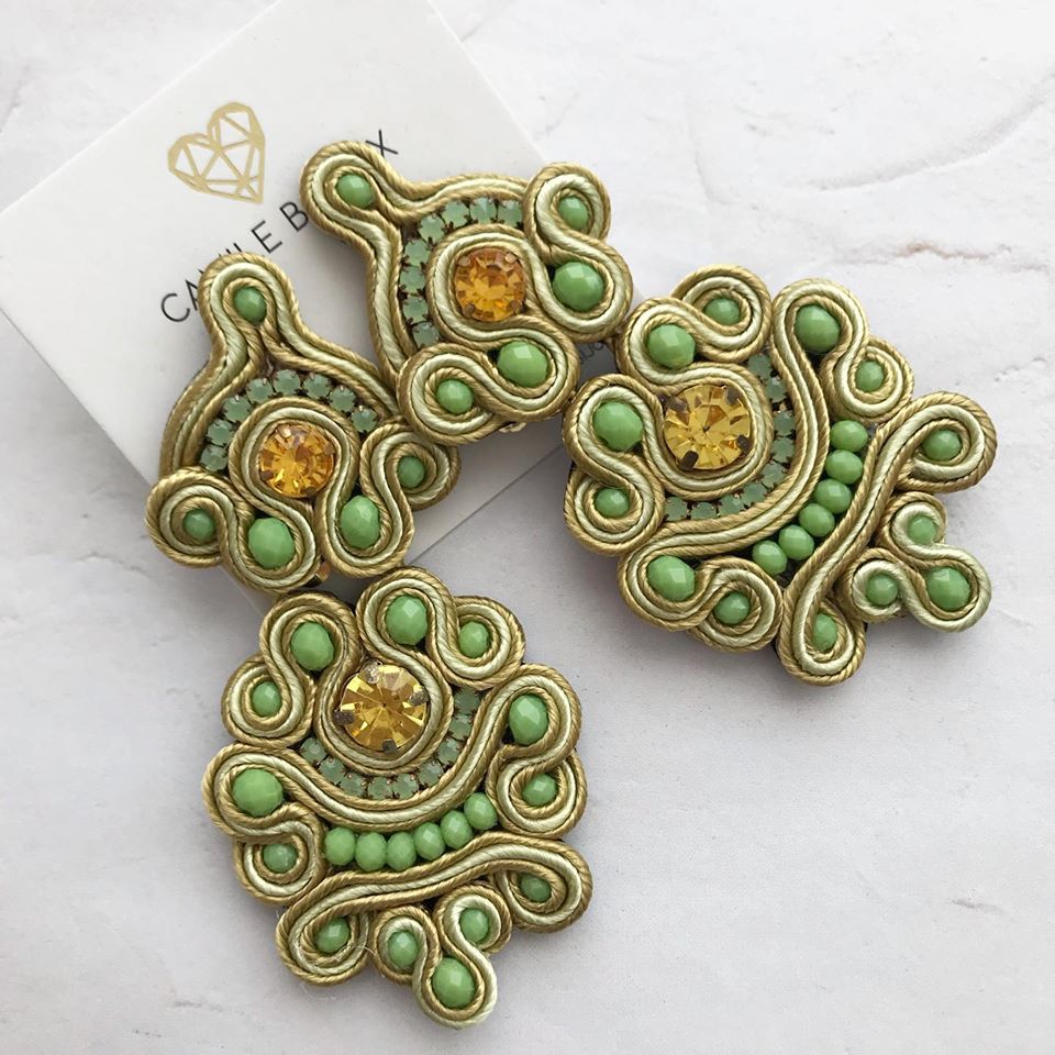 Lindos aretes hechos con la técnica de soutache. Largo: 9cm