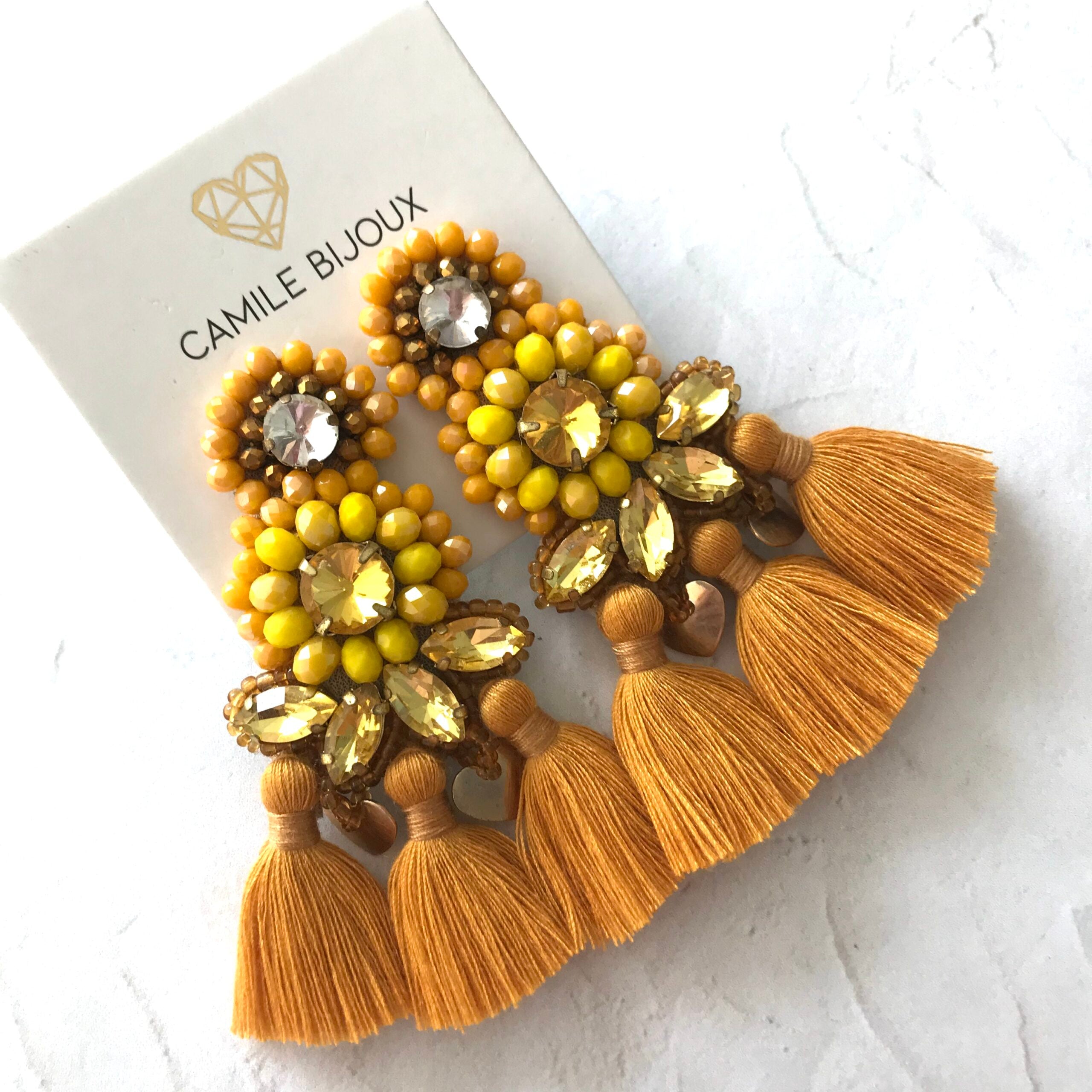 Lindos aretes hechos a mano con la técnica de bordado. Largo: 7,5CM