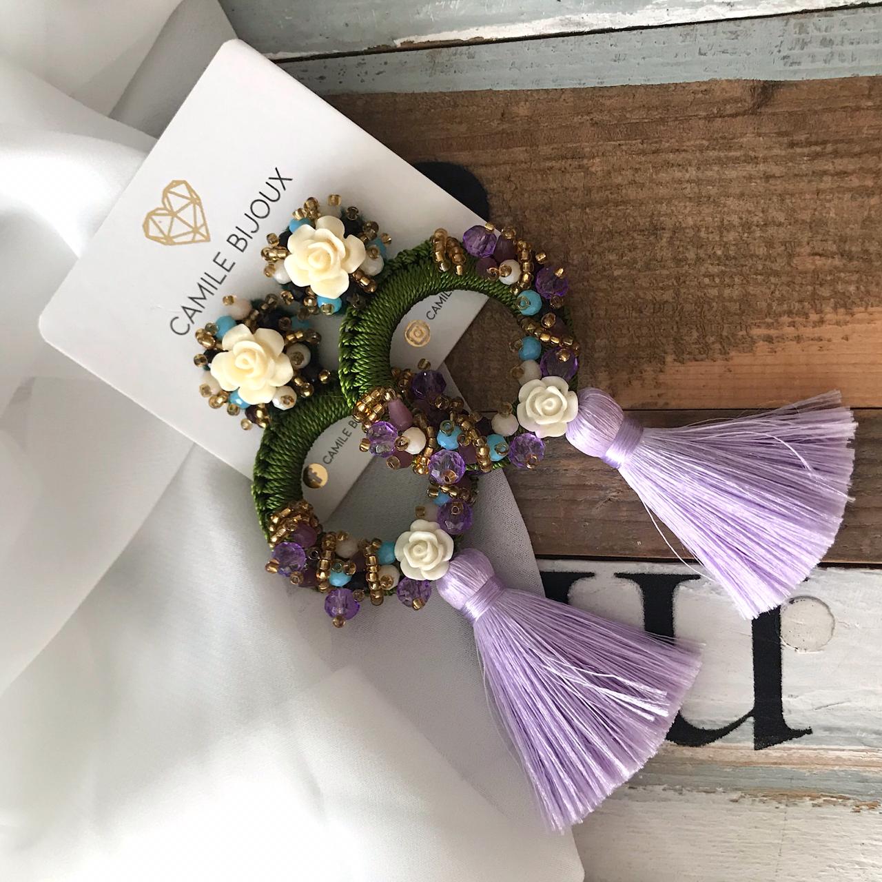 Estas piezas lindas son 100% hechas a mano con la técnica del bordado y macramé usando los más finos materiales de bisutería. ¡Son Livianos! Largo:9,5cm Todos nuestros accesorios viene en un lindo empaque perfecto para regalo.