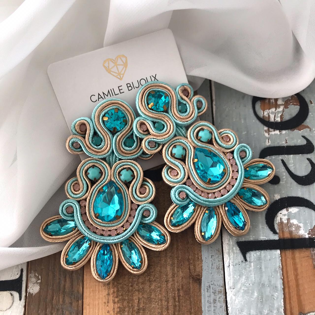 Lindos aretes hechos 100% a mano con la técnica francesa del soutache. Pin de fantasía. Largo:7,5CM Todos nuestros accesorios vienen en un lindo empaque perfecto para regalo.